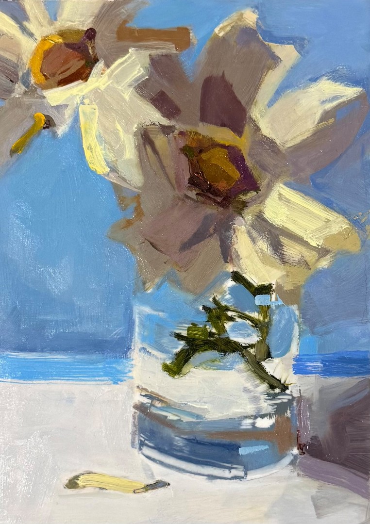 Roses and Glass, Soldoil on hardboard, 6" x 6"Roses and Glass, Sold