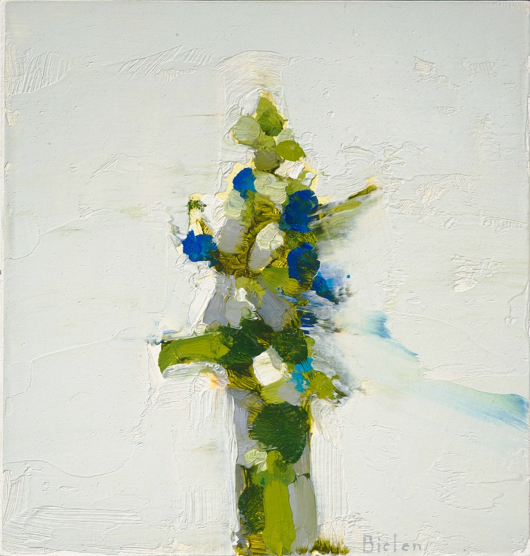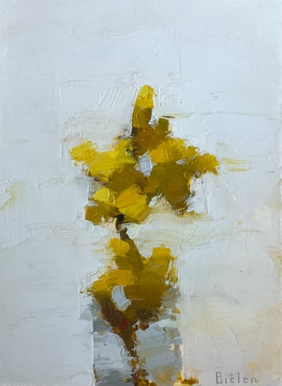 Stanley Bielen honors the European heritage of still life painting, placing high color, lush blossoms against velvety backgrounds. These small, intimate oils capture floral elegance with sweeping brushwork. Each mark is recorded in thick, intentional paint.