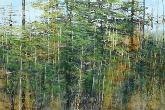 Wetland Woods, Song from the Shallowoil on panel, 36" x 60"Wetland Woods, Song from the Shallow