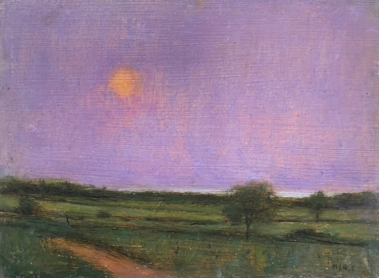 Crescent Moon over Meadowoil on panel, 9" x 9"Crescent Moon over Meadow
