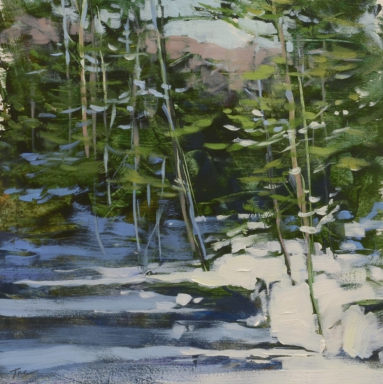 Spring Finally Reaches my Pondoil on paper, 7" x 7"Spring Finally Reaches my Pond